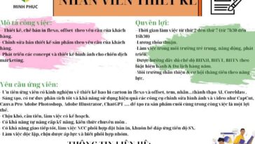 CÔNG TY TNHH BAO BÌ MINH PHÚC TUYỂN DỤNG VỊ TRÍ: 2. NHÂN VIÊN SALES ADMIN. 1. NHÂN VIÊN THIẾT KẾ. Quyền lợi: – Thời…
