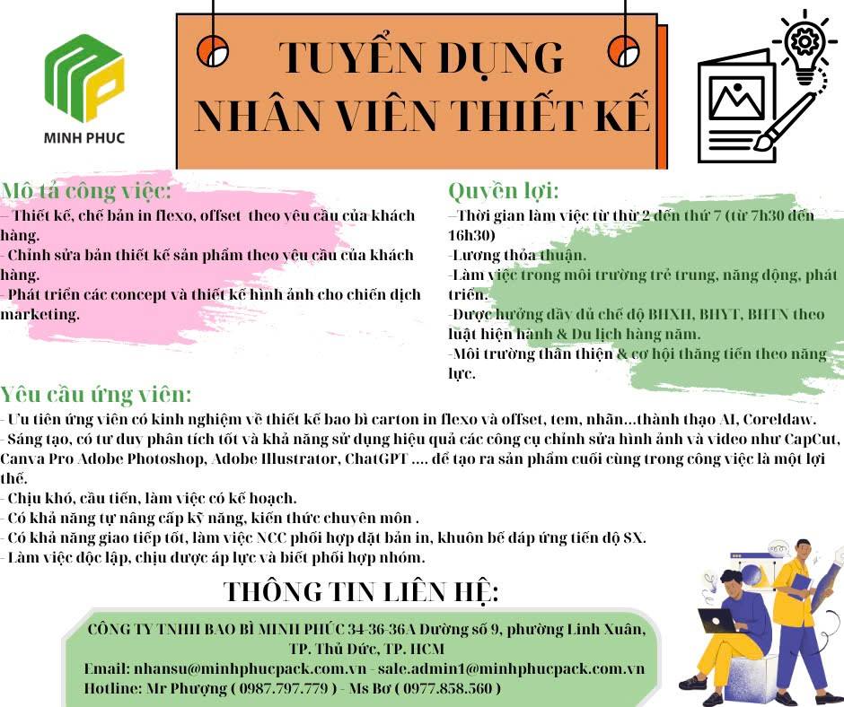 CÔNG TY TNHH BAO BÌ MINH PHÚC TUYỂN DỤNG VỊ TRÍ: